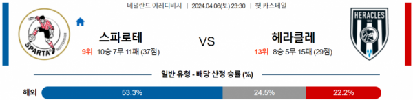 에레디비시 4월 6일 23:30 스파르타 로테르담 : 헤라클레스 알멜로