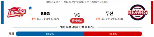 4월 3일 18:30 KBO SSG vs 두산 국내야구분석