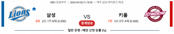 4월 3일 18:30 KBO 삼성 vs 키움 국내야구분석